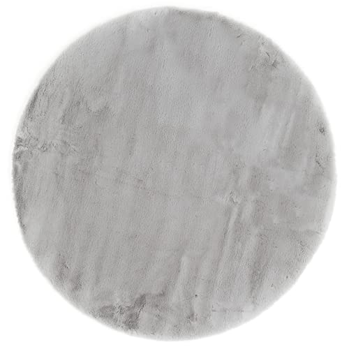 -LUXOR – living matta coste mysig hög lugg fuskpäls matta pälsimitation i fårskinnslook 120 cm rund grå