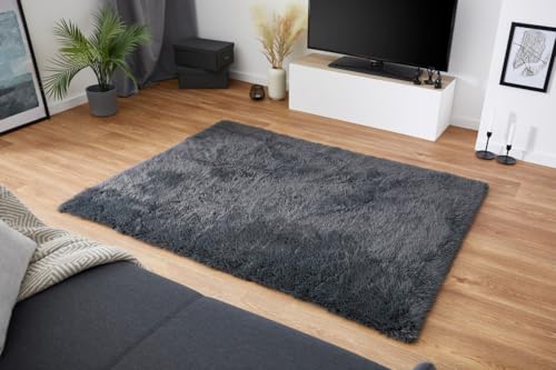 andiamo fuskpäls matta, Alpa, mysig hög lugg, vardagsrumsmatta, pälsmatta 35 mm, hög lugg, mjuk och fluffig matta, vardagsrum, antracit 120 x 160 cm