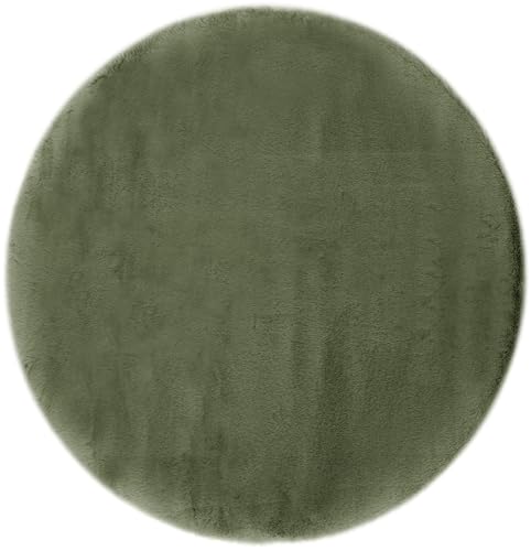-LUXOR- levande fuskpäls coste fluffig matta sovrum – perfekt för användning som sängmatta sovrum – mysig pälsmatta lammskinnsimitation 120 cm rund mörkgrön