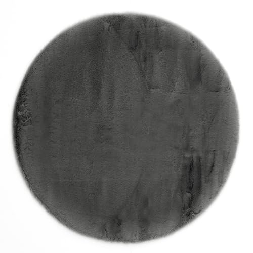 -LUXOR- living Matta, mysig hög lugg, fuskpäls, matta, pälsimitation i fårskinnsutseende, 80 cm, rund, antracit