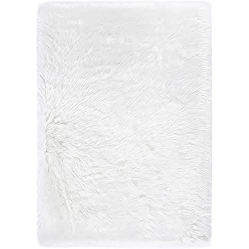 Pauwer Faux lammskinn fårskinn matta fuskpäls lammskinnsimitation matta långhårig päls utseende imitation ull sängmatta soffa matta (vit, 60 x 90 cm)