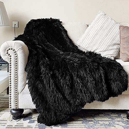 JONIYEAR Dekorativ, mjuk fluffig pläd i 7 cm (2,8 tum) lång fuskpäls, 127 x 152 cm (50 x 60 tum), enfärgad, lurvig accentfilt för bäddsoffa, mysiga, lätta, filtar för husdjur, tjock, varm, svart