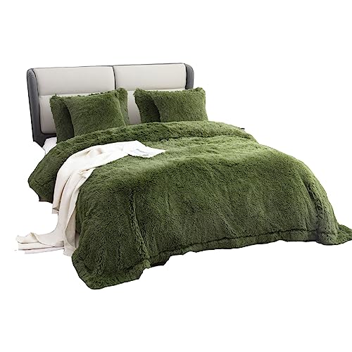 Yusoki Pläd i fuskpäls, utan kuddar, lätt, plysch, luddig, mjuk, mysig mikrofiber bekväm sängfilt för kvinnor/barn/flickor, soffilt, tvättbar, king size-storlek (olivgrön, 238 x 264 cm)