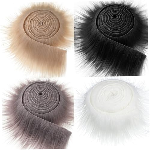 4 st fuskpäls kant fuskpälsband pälstyg, räv päls tyg lurvig konstgjorda ränder band trim för björn jultomte hår dvärg gör-det-själv dekoration