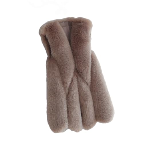Dvbfufv Lång fuskpälsväst för kvinnor smal fuskpälsrockar kvinnor plus size fuskpäls teddy väst jacka, Khaki9, XL