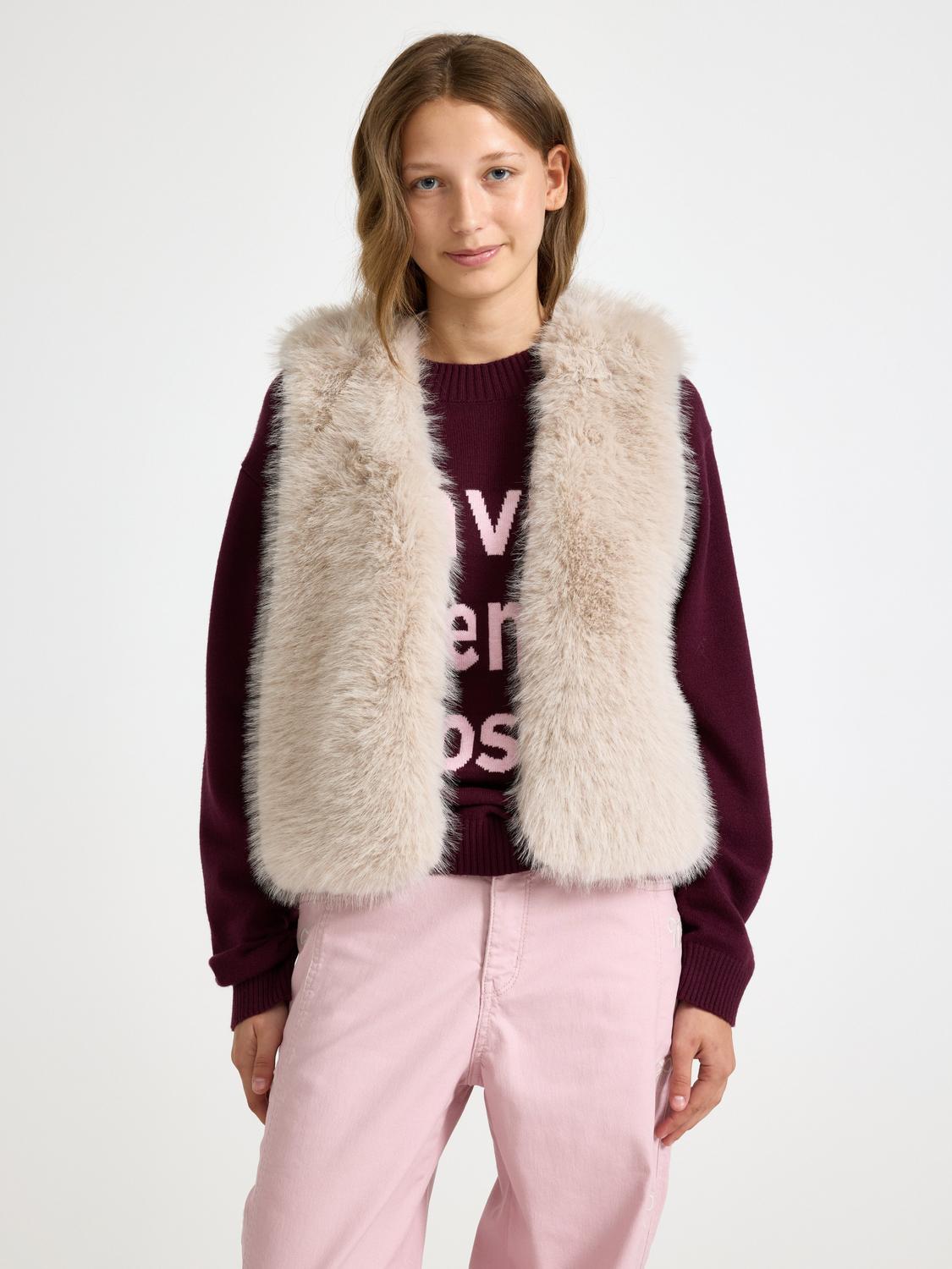 s.Oliver väst av fuskpäls, ecru, 128