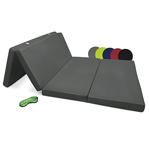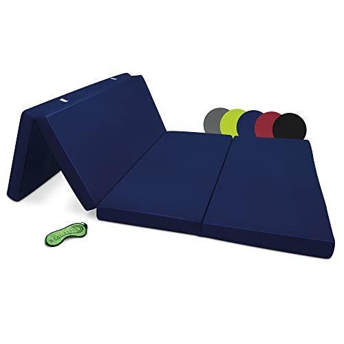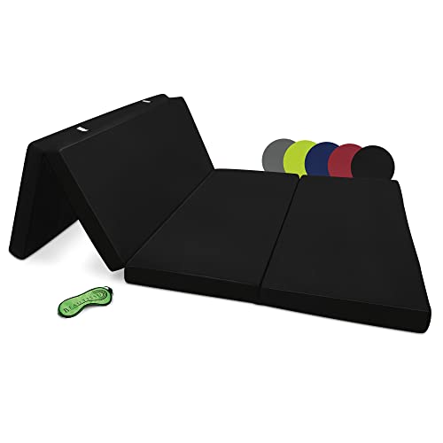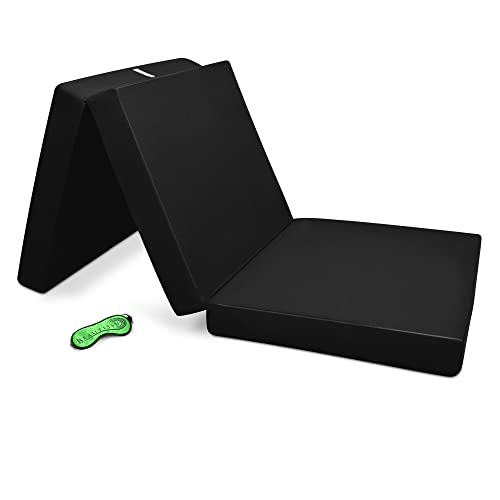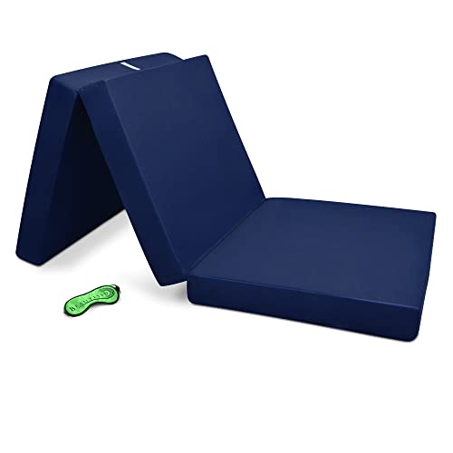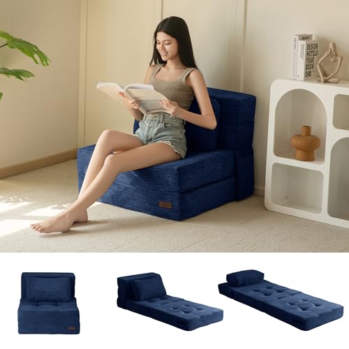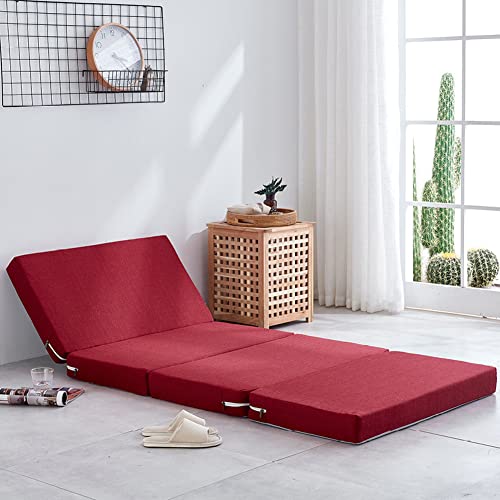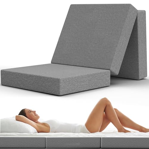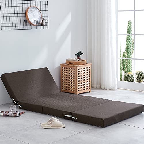MAXYOYO Hopfällbar skumbäddsoffa, tredelad madrass med 1 kudde, konvertibel soffstol futon Z-säng med 15 cm tunt skum, bärbar 3-i-1 golvsoffa