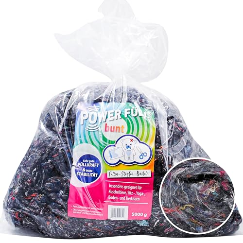 POWER FYLL fyllnadsvadd 5 kg – 5 x 1 kg Ökotex antiallergisk tvättbar 95 °C, mycket fluffig kuddfyllning pysselvadd fyllningsmaterial, stoppmaterial (5 000 g, 5 000 00)