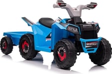 Elektrisk fyrhjuling för barn - El-quad med släpvagn - 6V batteri - 2,5 km/h - 6 hjul - halkfritt styre - 18–36 mån - Blå