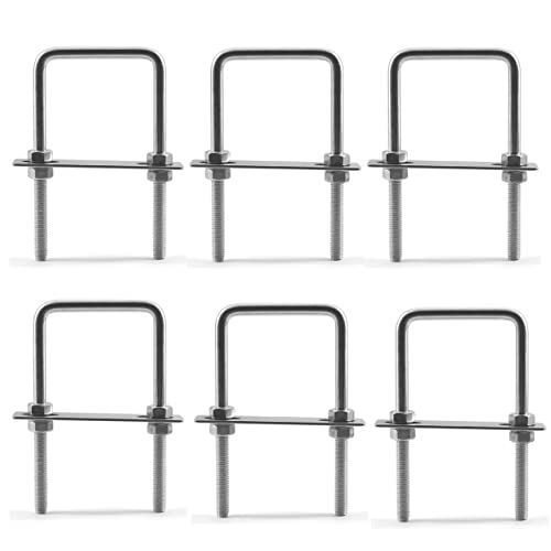 304 Fyrkantiga U-bultar i rostfritt stål, M6 x 25 x 50 mm, fyrkantig U-bult med muttrar och plattor, bricka 6-pack