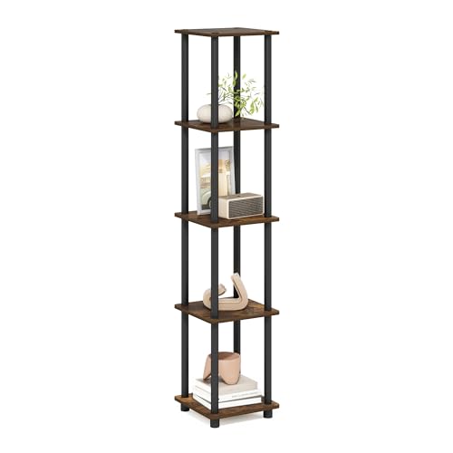Furinno Turn-N-Tube 5-nivås hörn fyrkantig hylla visningshylla med runt rör, espresso/svart