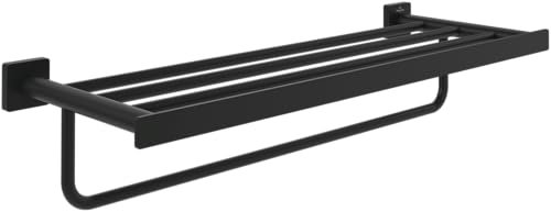 Villeroy & Boch Elements – Striking handdukshylla, handdukshållare med hylla för väggmontering, handdukshylla med handduksstång, längd 595 mm, fyrkantig, matt svart