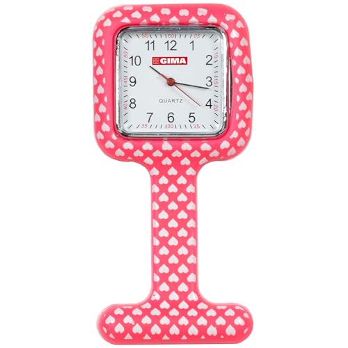 Gima - Klocka för sjuksköterskor i silikon, Quandrante fyrkantig, mönster hjärtan