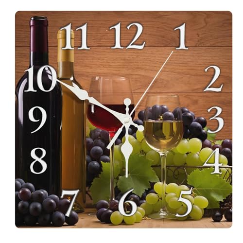 Britimes fyrkantig väggklocka tyst icke-tickande batteridriven klocka 30 cm, glasögon rött vitt vin vindruvor heminredning för vardagsrum, kök, sovrum och kontor