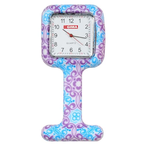 Gima - Klocka för sjuksköterskor i silikon, Quandrante fyrkantig, lila och blå mönster
