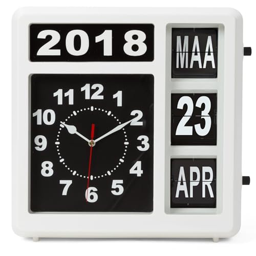 Perel Fyrkantig klocka med gungkalender, perfekt för synskadade och personer med Alzheimers eller demens, analog, 31 x 31 cm, vit/svart, holländsk version