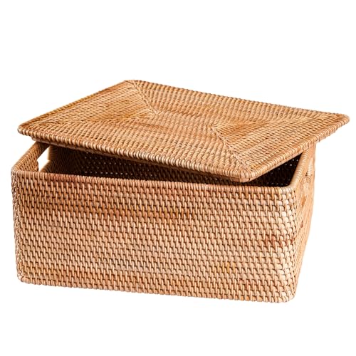 FIYAMMY Rottingkorg med lock, stor korg med lock för förvaring fyrkantig rottinglåda (40 cm L × 14,43 cm B × 11,20 cm H)