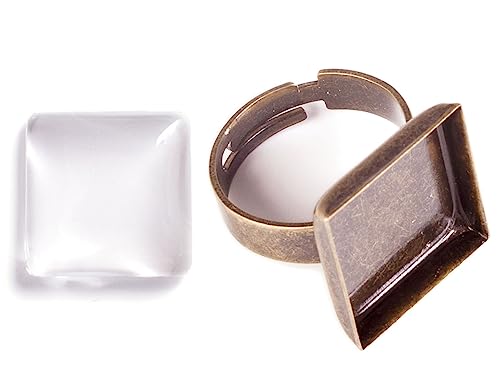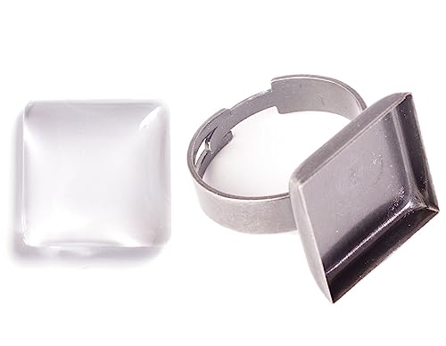 INNSPIRO Metallisk och justerbar silver fyrkantig cameo ring åldrad med 16x16mm glas kugge., 16x16mm, Metall