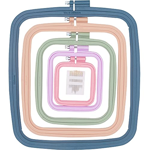 LAMXD 5 delar broderi ring rektangel fyrkantig broderi ram korsstygn ring sömnad verktyg för konst hantverk praktisk sömnad (flerfärgad), med guldöga broderisnålar.