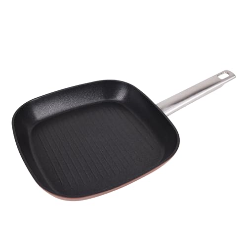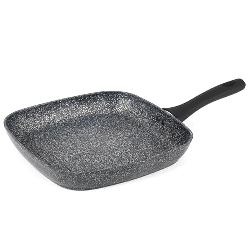 Plancia Grill, fyrkantig, non-stick, i formgjuten aluminium – perfekt för biffar, grönsaker och grillar – mångsidig planka – non-stick stekpanna – Grill för biffar – 28 x 28 cm, svart