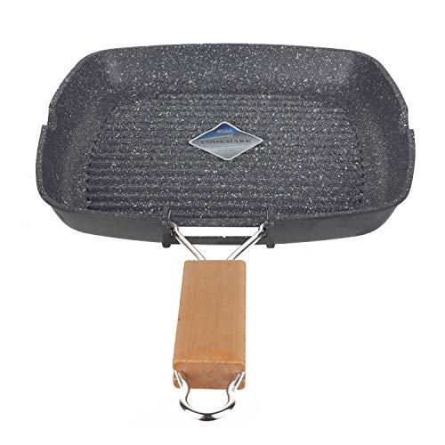 Zilan, stekpanna grill 28 cm, induktionshäll, vikbart trähandtag, aluminiumgjutning, grill för inre kokplatta, fyrkantig stekpanna, aluminium