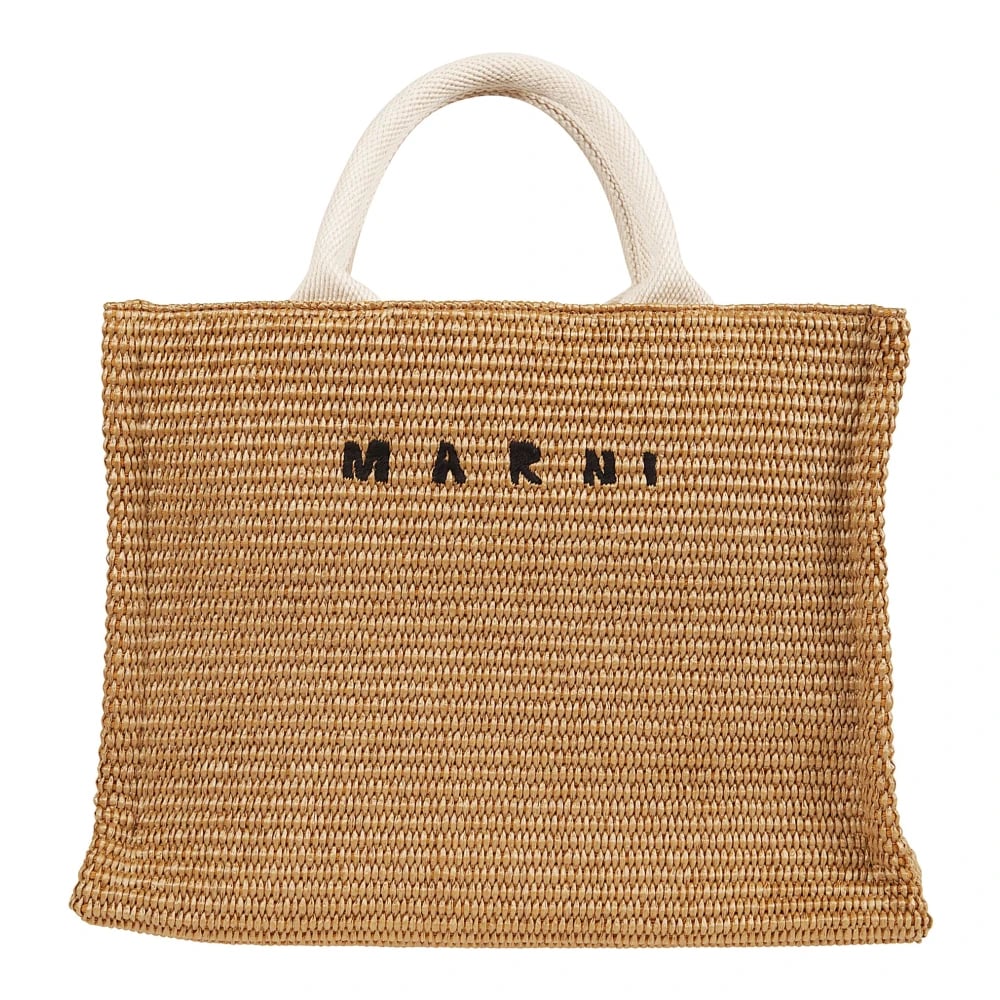Marni, Väskor , Dam, ONE Size, Bomull, Fyrkantig raffia axelväska med broderad kontrastlogotyp