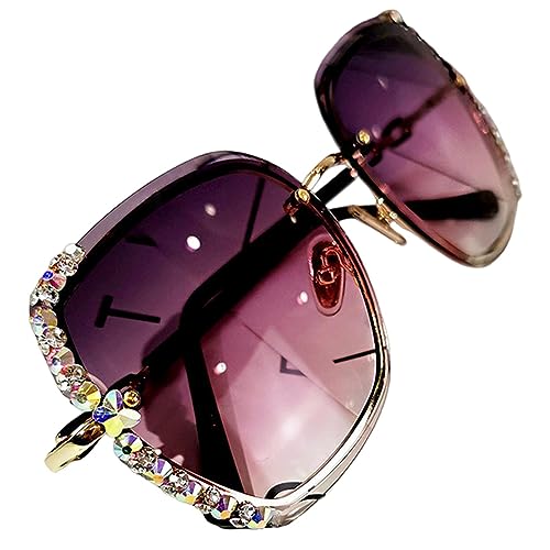 NOGRAX Strass fyrkantiga solglasögon polariserade solglasögon kvinnor strass ramlösa solglasögon fyrkantiga gradientglasögon, Lila, A