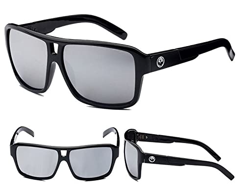 KANASTAL Fyrkantiga Män Solglasögon för Kvinnor Herr Dam Sol Glasögon Polariserade UV400 Men Sunglasses for Vandring Golf Körning Fiske - Matt Svart Ram Silver Linser