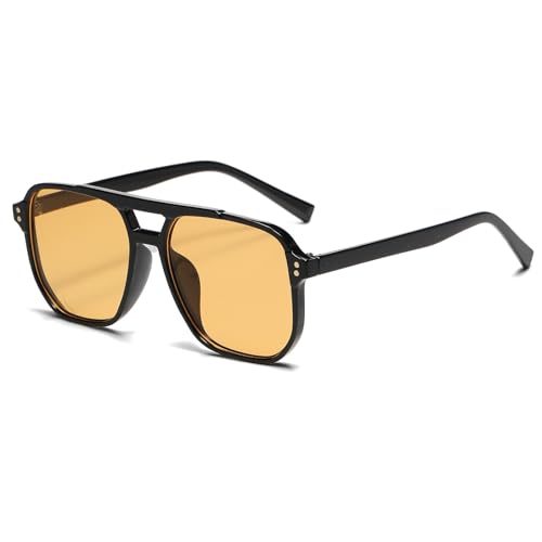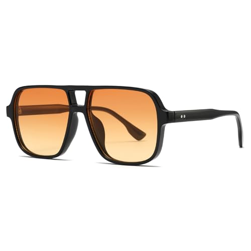 YAMEIZE Pilot solglasögon herr dam fyrkantiga dubbla broar retro stora glasögon 70s vintage stil UV400 skydd, Svart/orange