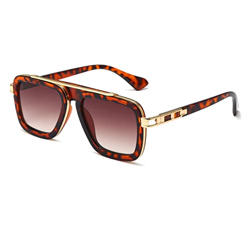 Long Keeper Fyrkantiga solglasögon för män kvinnor, klassisk retro solglasögon guldram pilot glasögon vintage mode UV400 linser, Leopardram