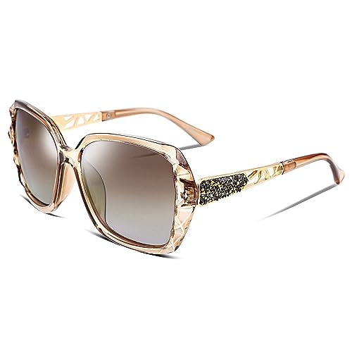 Joopin Damsolglasögon Polariserat UV-skydd Mode Stora Oversize Fyrkantiga Solglasögon Kvinnor(Svart + Ljusbrun)