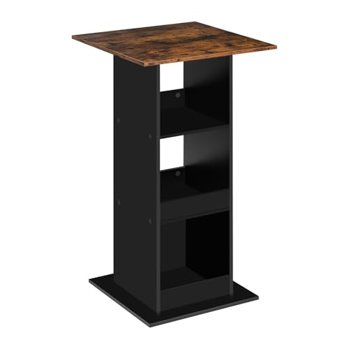 WOLTU Bbord bistrobord, ståbord, köksbord, diskbord, fyrkantigt bord med 3 hyllfack, för bar, kök, vardagsrum, av trämaterial, bordshöjd 112 cm, svart rustik brun