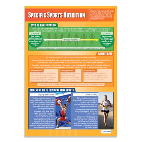 Specifik sportnäring | PE-affischer | Laminerat glansigt papper som mäter 850 mm x 594 mm (A1) | Fysiskt utbildningsdiagram för klassrummet | Utbildningsdiagram från Daydream Education