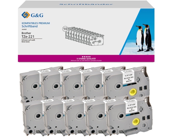 G&G 20101, Svart På Vitt, Kontinuerlig Etikett, Tze, Grå, Brother, Brother Ptouch 1000 Brother Ptouch 1010 Brother Ptouch 1280 Brother Ptouch 1750 Brother Ptouch 18R...