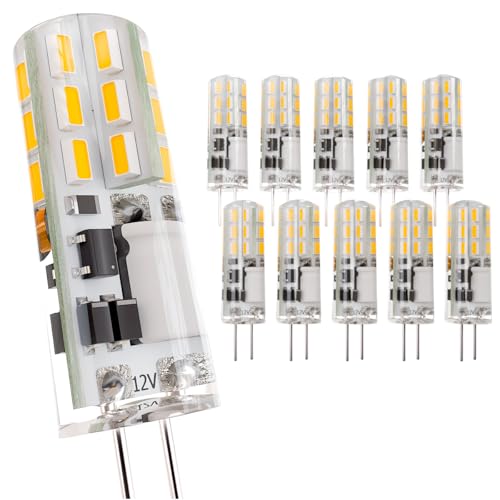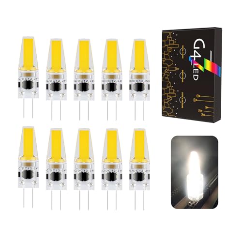 JAUHOFOGEI G4 LED 12 V lampa, 1 W LED-lampa glödlampa som ersätter 10 W halogen stiftsockellampa, miniglödlampor, varmvit, inte dimbar, 10 stycken