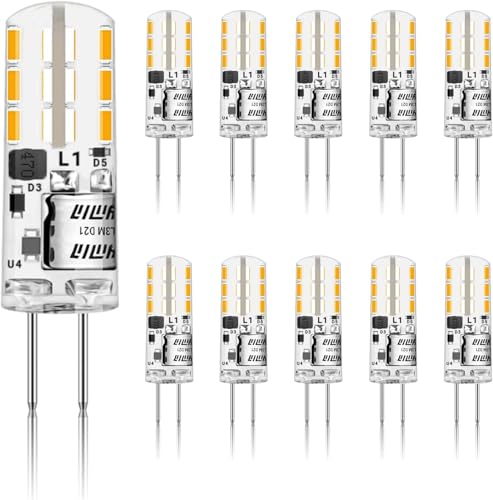 JAUHOFOGEI G4 LED 12 V lampa, 1 W LED-lampa glödlampa som ersätter 10 W halogen stiftsockellampa, miniglödlampor, varmvit, inte dimbar, 10 stycken