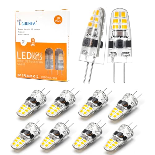 I-SHUNFA G4 LED-lampor 1,2 W dimbar naturvit 4000 K AC/DC 12–24 V mini-LED-glödlampa ersättning 10 W–15 W G4 halogenlampa för kök, köksfläkt, kontor (10-pack)
