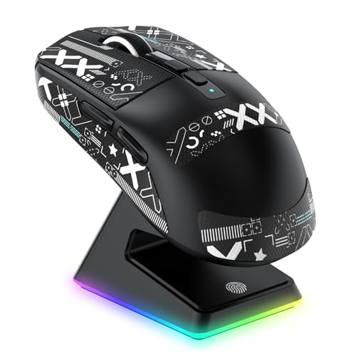 VGN Game Power Attack Shark X6 Superlight trådlös spelmus med RGB-laddningsstation, 49 g ultralätt mus, PixArt PAW3395-sensor, 26000DPI, 2.4G/BT/kabelansluten, griptapet-set, G502, PC/Mac, svart