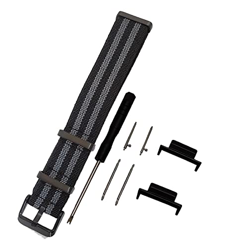 Richie strap 22 mm nylon klockarmband militär stil fallskärm premium randig elastisk klockarmband metalladaptrar kit för Casio GA2100 GShock, Svart (grå linje)