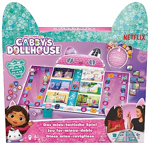 Spin Master Games Gabby's Dollhouse, MIAU-tastiska spelet – brädspel till den populära förskoleserien på Netflix, för 2-4 spelare, perfekt för barn från 4 år