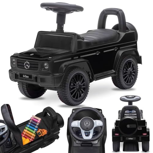 Barnbil från 1 år, bobbycar Mercedes, bil för barn, gåbil med tut och motorljud (Svart)