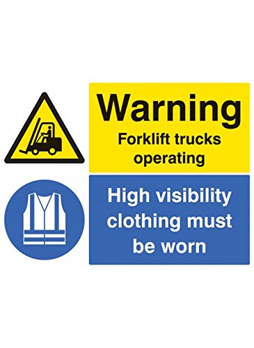 Caledonia skyltar 14047Q varning gaffeltruck drift hög synlighet kläder måste bäras utanför denna punktskylt, 600 mm x 450 mm, styv plast