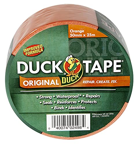 Duck Tape Original orange, 50 mm x 25 m förbättrad formel, höghållfast, vattentät gaffer- och kanaltejp, reparationstejp