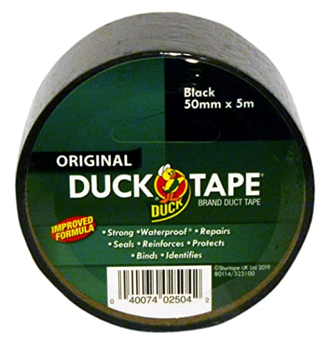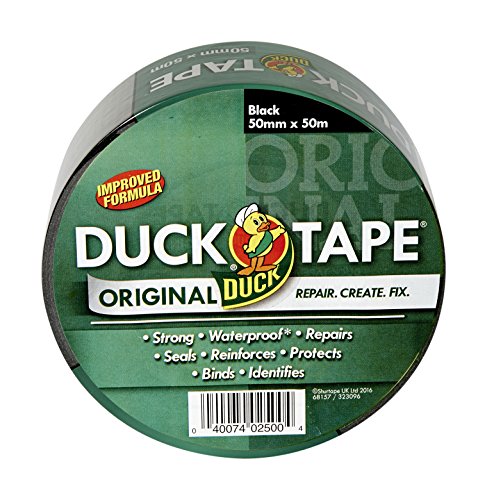 Duck Tape Original svart, 50 mm x 25 m, förbättrad formel hög hållfasthet vattentät gaffer och kanal självhäftande tyg reparationstejp