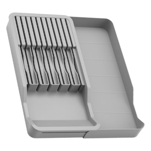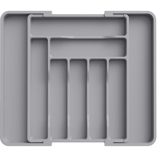 Lifewit besticklåda, organisatör, utdragbar bestickbricka för kökslådan, justerbar kökslådsorganisatör för redskap, bestick, förvaringsinsats i plast för skedar, gafflar, knivar, Medel, Grå
