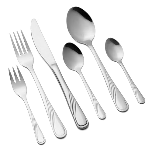 FLORINA Rostfritt Stål Bestickset 24-delar för 6 Personer I Matbestick PIANO I Komplett Set med Gafflar, Knivar, Matlöfflar, Teskedar I Bordssilver I Bestickset I Diskmaskinssäkert I Färg: Silver