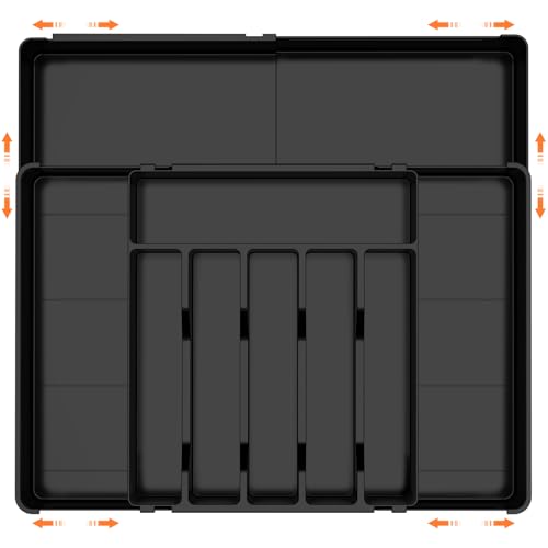 AiQInu Förvaringslåda, expanderbar kökslåda, bestickhållare, bestickhållare för skedar, gafflar och knivar, stor, svart, 50 x 36 x 5,3 cm