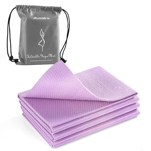 Navaris Vikbar yogamatta för resor – 1,5 mm tunn träningsmatta för yoga, pilates, träning, gym, fitness – halkfri vikbar bärbar matta – lila