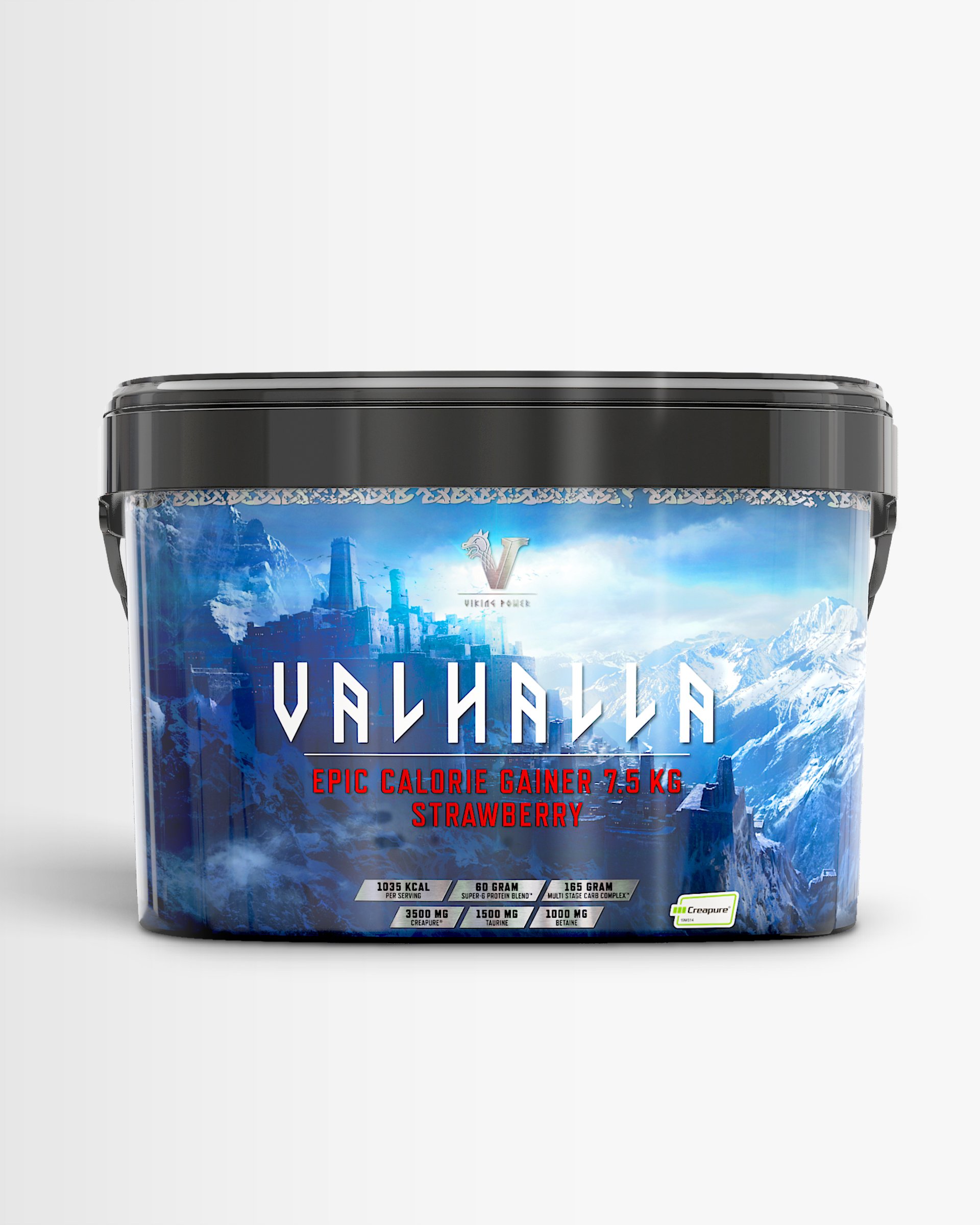 Gainer - 7500 g - Strawberry - Viking Power Valhalla Epic Calorie Gainer - Extrem bulkning, protein, kolhydrater, viktökning