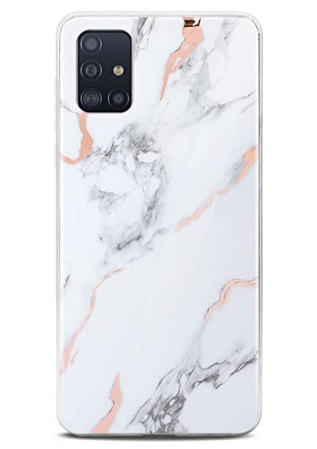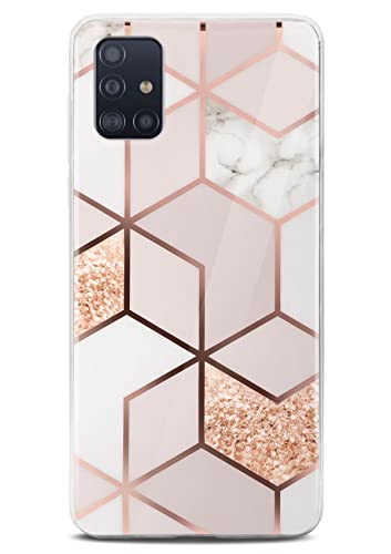ONEFLOW Sense Case kompatibelt med Samsung Galaxy A51, fodral i marmorutseende, skydd för kamera och skärm, glitter, mobiltelefonskal av silikon – glänsande roséguld (devotion)